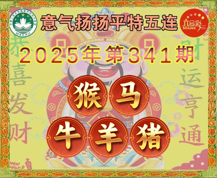 341期: 意气扬扬 🥽平特五连🥽【猴马牛羊猪】开:猴34,马12,牛05,羊35,猪07