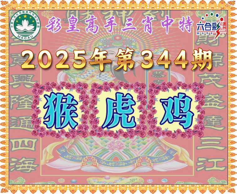 344期:【彩皇高手】 👩‍🌾三肖中特👩‍🌾【猴.虎.鸡】开:00准