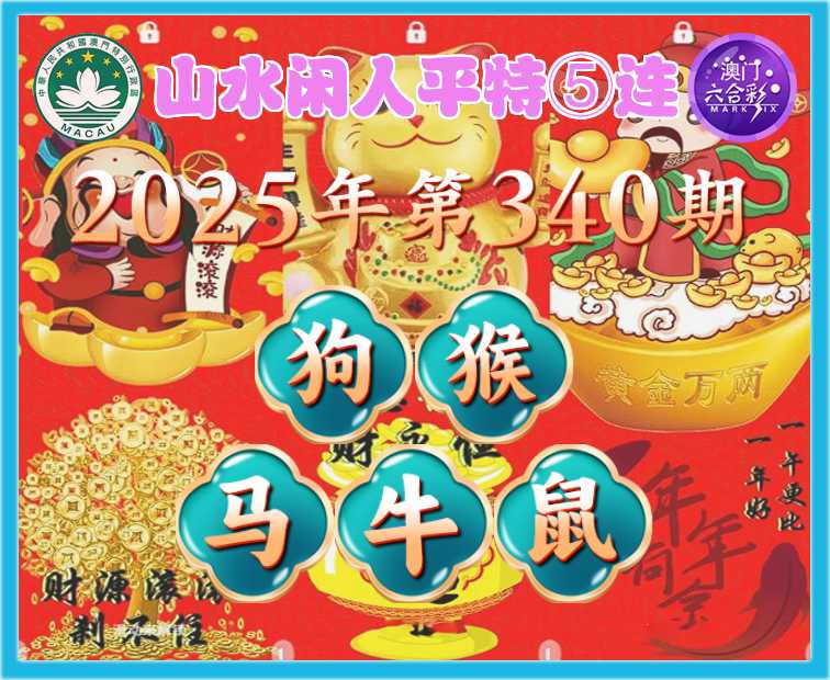 340期:〖山水闲人〗 🍀平特⑤连🍀【狗猴马牛鼠】开:00