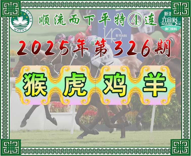 326期:【顺流而下】 🥽平特④连🥽【猴虎鸡羊】开:猴46,虎04,鸡33,羊23
