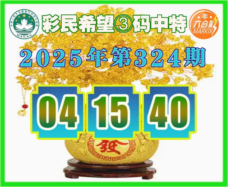 324期:〖彩民希望〗 🚣③码中特🚣【04.15.40】开:15