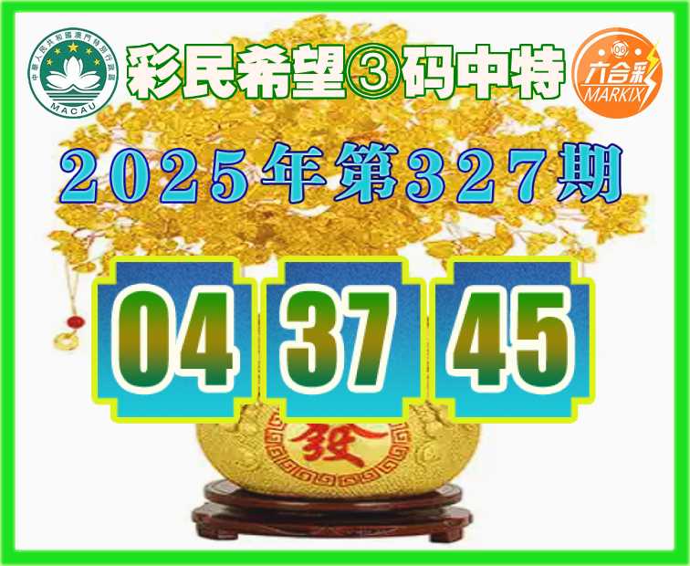 327期:〖彩民希望〗 🚣③码中特🚣【04.37.45】开:37