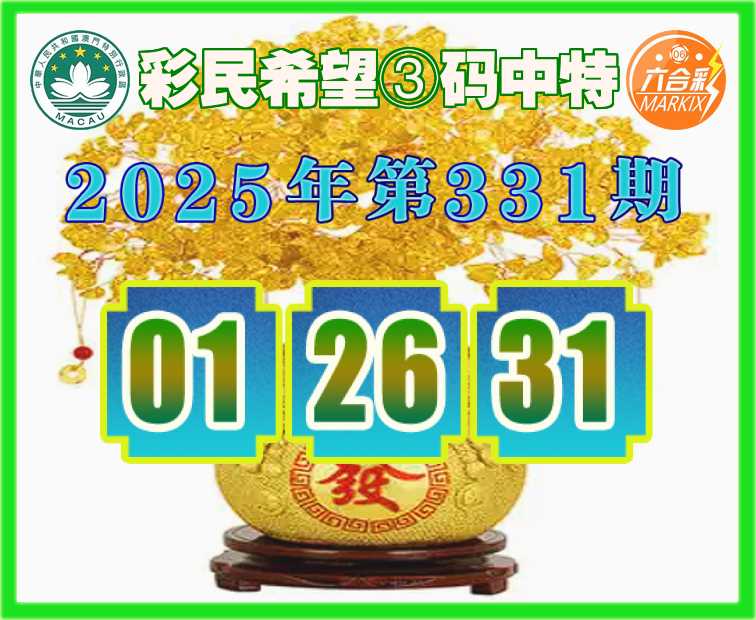 331期:〖彩民希望〗 🚣③码中特🚣【01.26.31】开:26