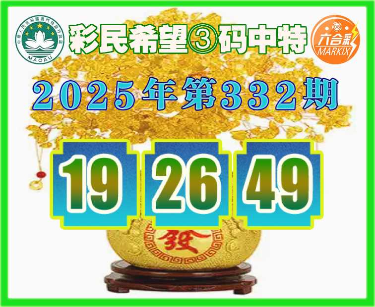 332期:〖彩民希望〗 🚣③码中特🚣【19.26.49】开:26