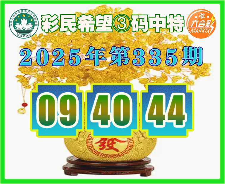 335期:〖彩民希望〗 🚣③码中特🚣【09.40.44】开:44