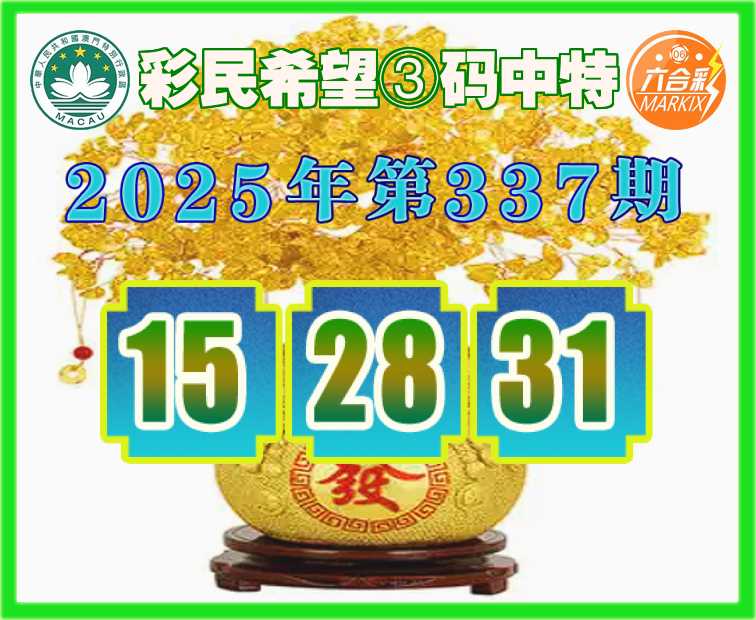 337期:〖彩民希望〗 🚣③码中特🚣【15.28.31】开:09