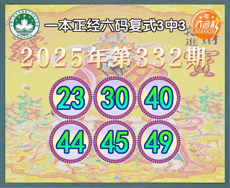 332期:『一本正经』 ☝️六码复式3中3☝️
