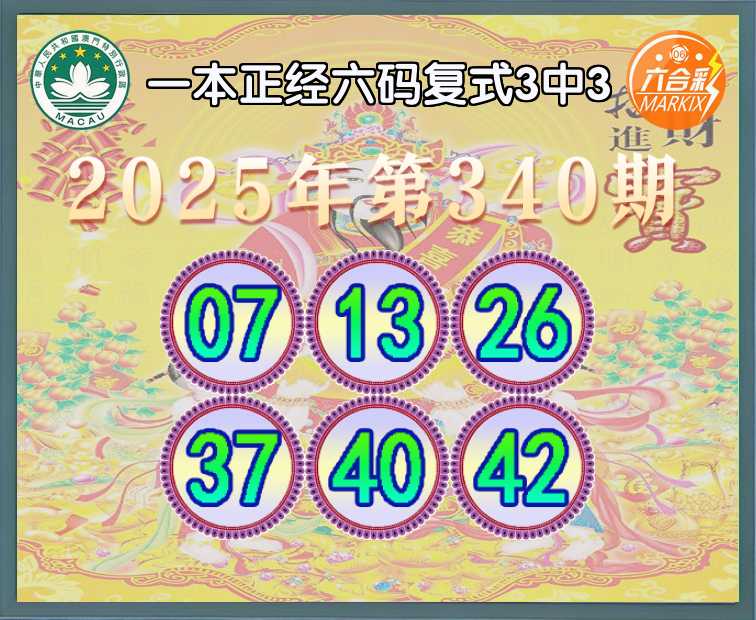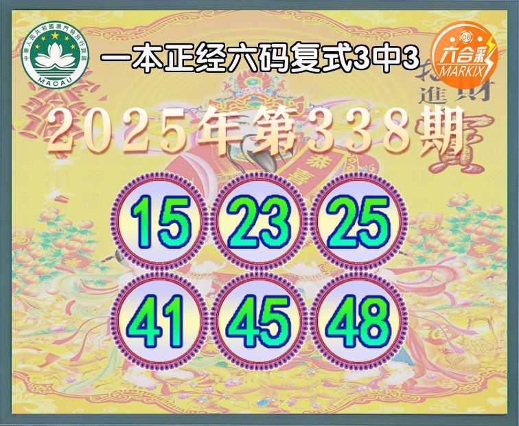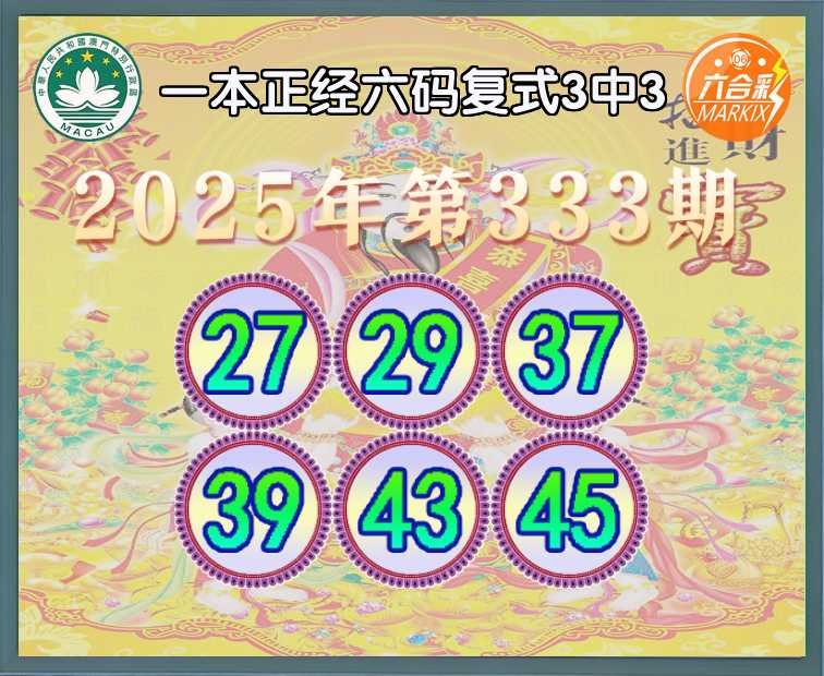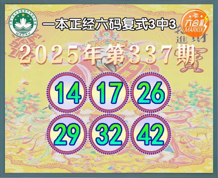 337期:『一本正经』 ☝️六码复式3中3☝️