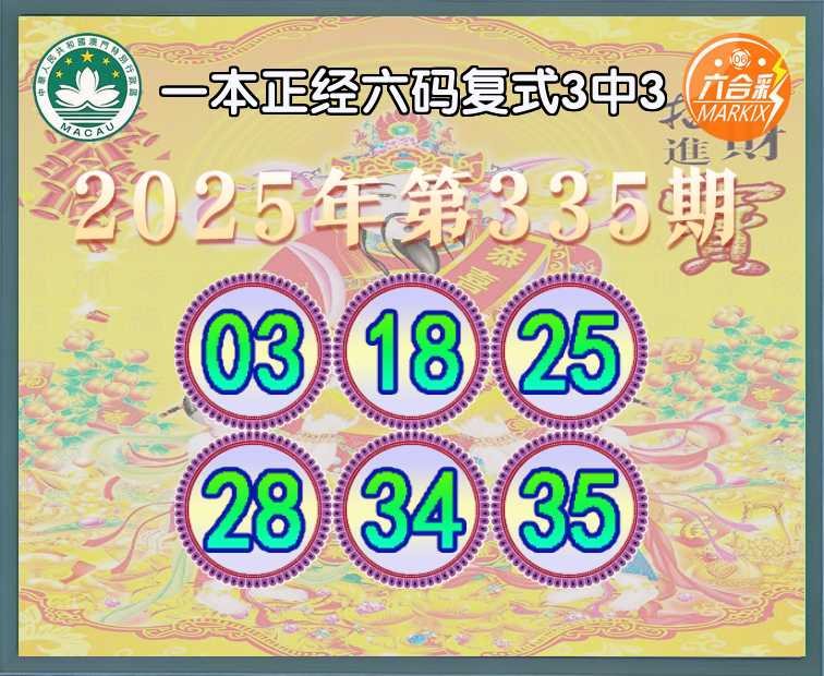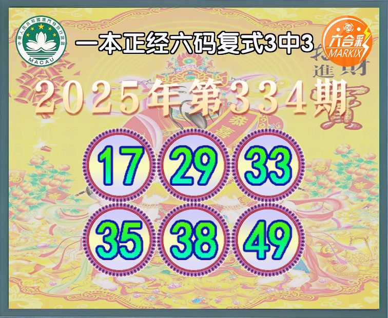 335期:『一本正经』 ☝️六码复式3中3☝️