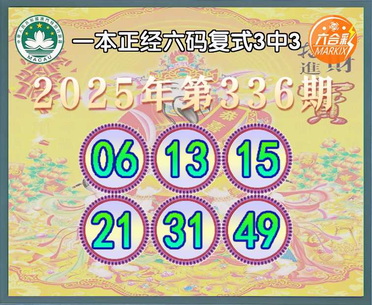 336期:『一本正经』 ☝️六码复式3中3☝️