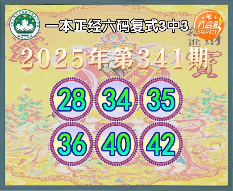 341期:『一本正经』 ☝️六码复式3中3☝️