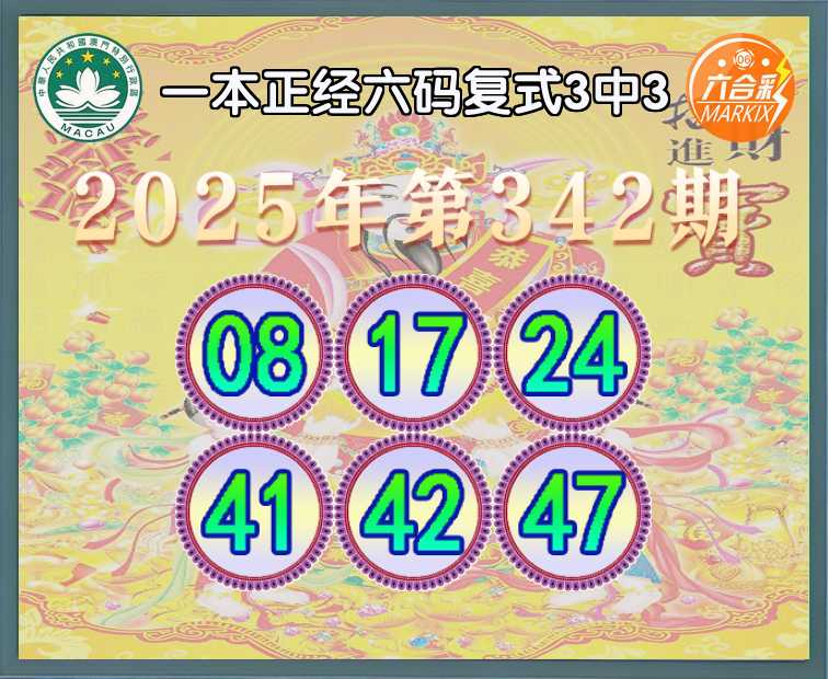 342期:『一本正经』 ☝️六码复式3中3☝️