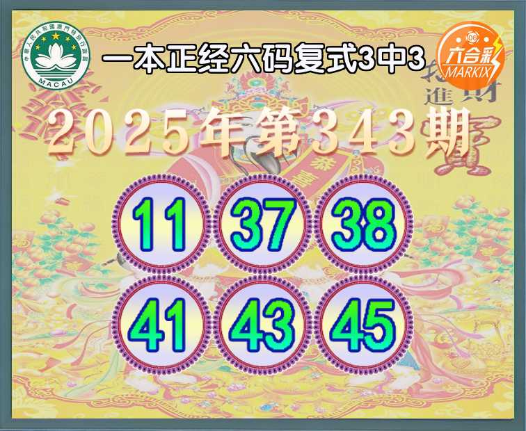 343期:『一本正经』 ☝️六码复式3中3☝️