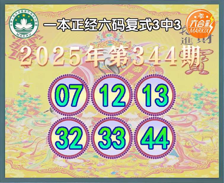 344期:『一本正经』 ☝️六码复式3中3☝️