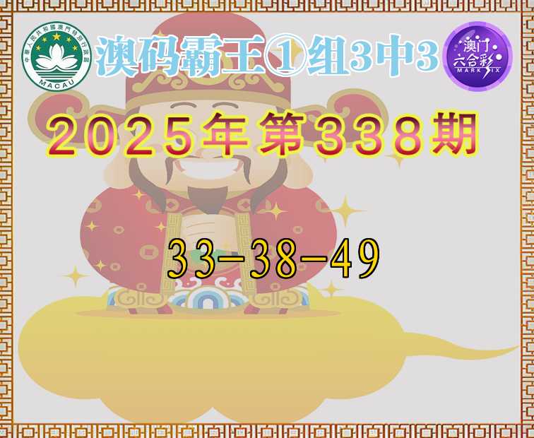 338期:《澳码霸王》 🥧①组3中3🥧【33-38-49】