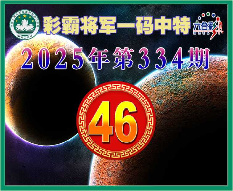 334期:【彩霸将军】 🎈一码中特🎈【46】开:46