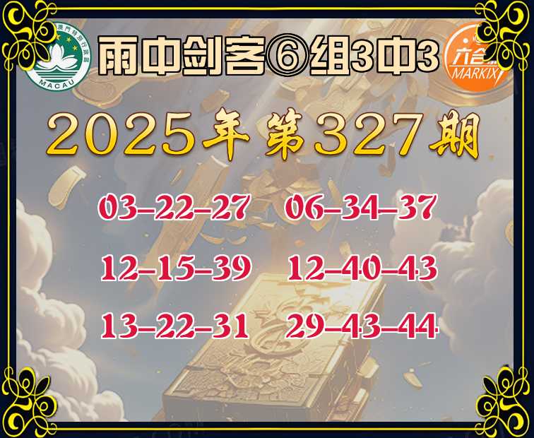327期:《雨中剑客》 🀄⑥组3中3🀄