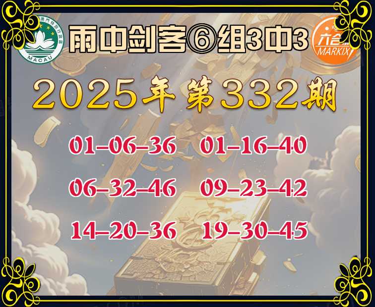 332期:《雨中剑客》 🀄⑥组3中3🀄