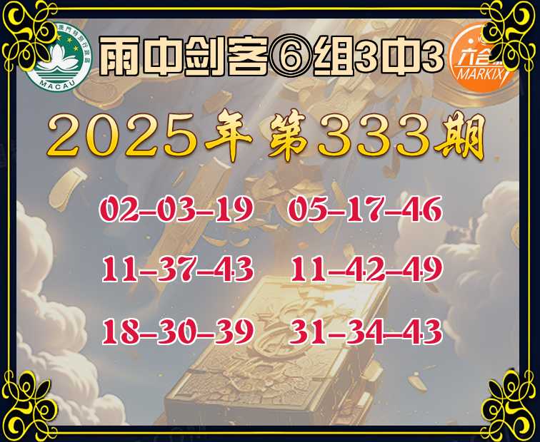 333期:《雨中剑客》 🀄⑥组3中3🀄