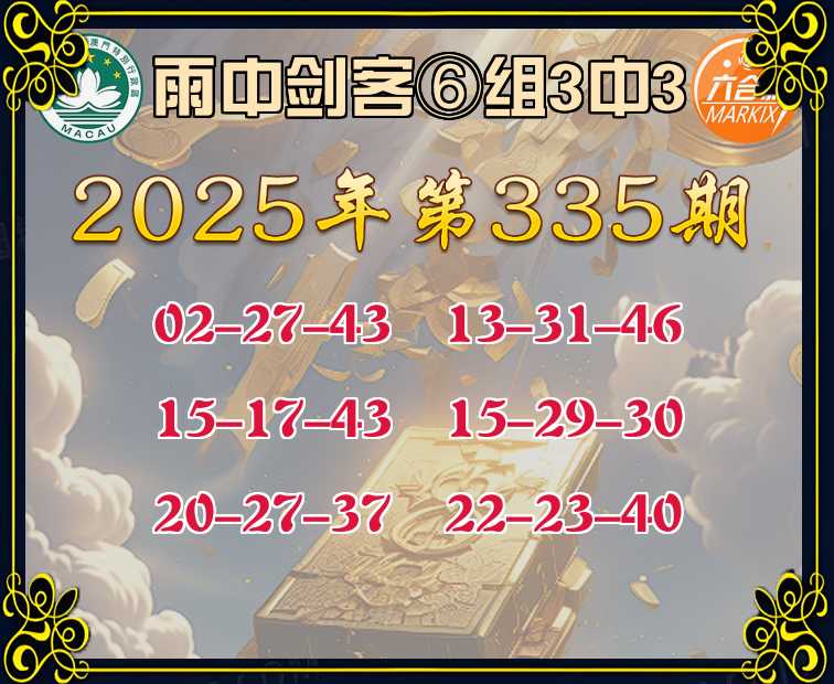 335期:《雨中剑客》 🀄⑥组3中3🀄