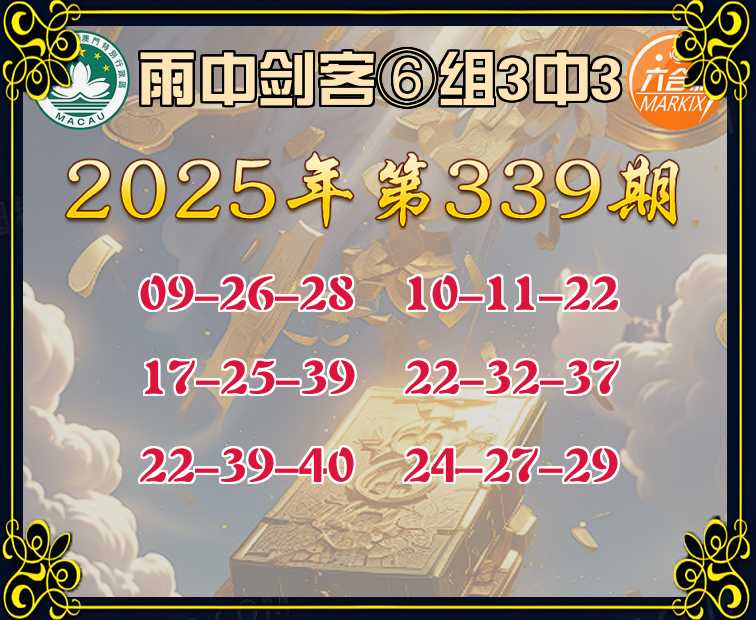 339期:《雨中剑客》 🀄⑥组3中3🀄