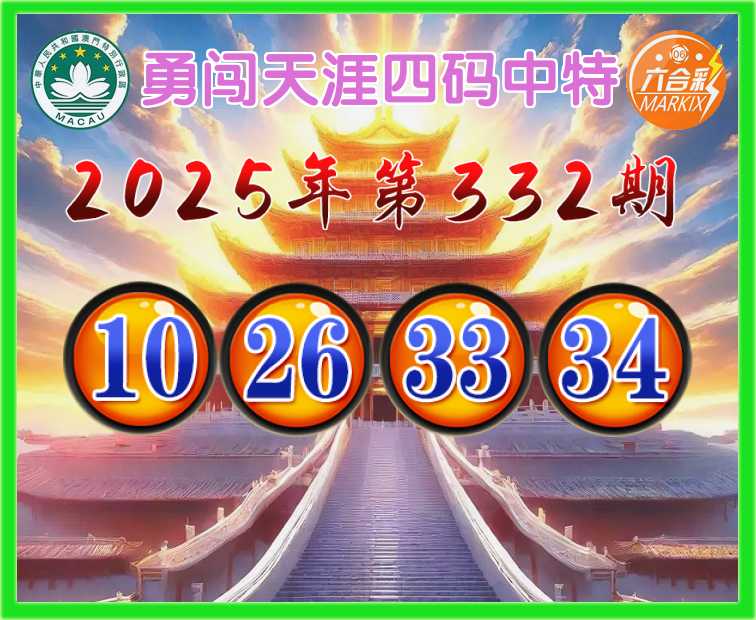 332期:【勇闯天涯】 🥰四码中特🥰【10.26.33.34】开:26