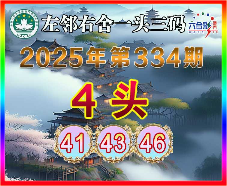 334期:『左邻右舍』 🧣一头三码🧣【4头主:41.43.46】开:猴46