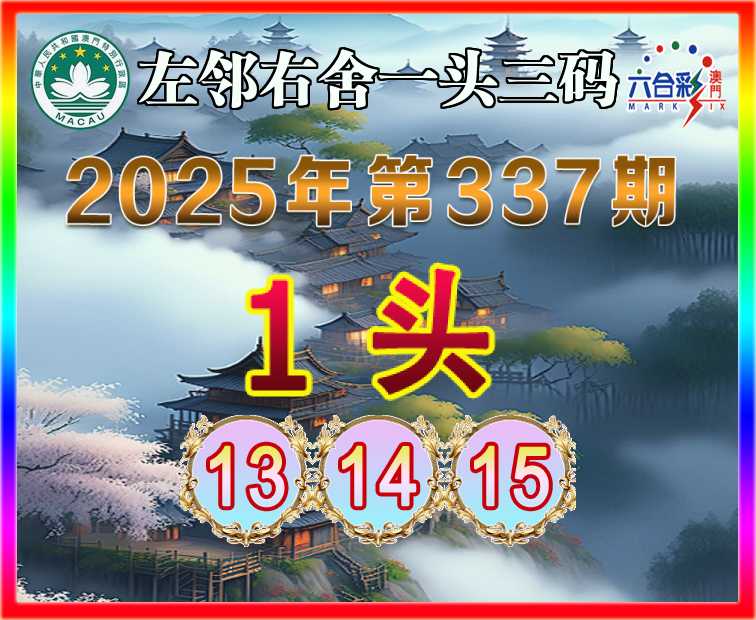 341期:『左邻右舍』 🧣一头三码🧣【1头主:13.14.19】开:00准