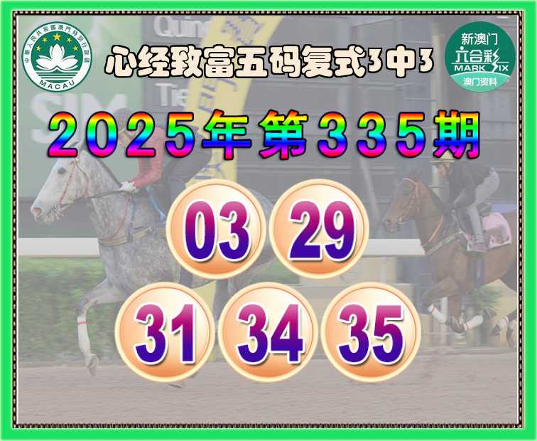 335期:【心经致富】 ♠️五码复式3中3♠️
