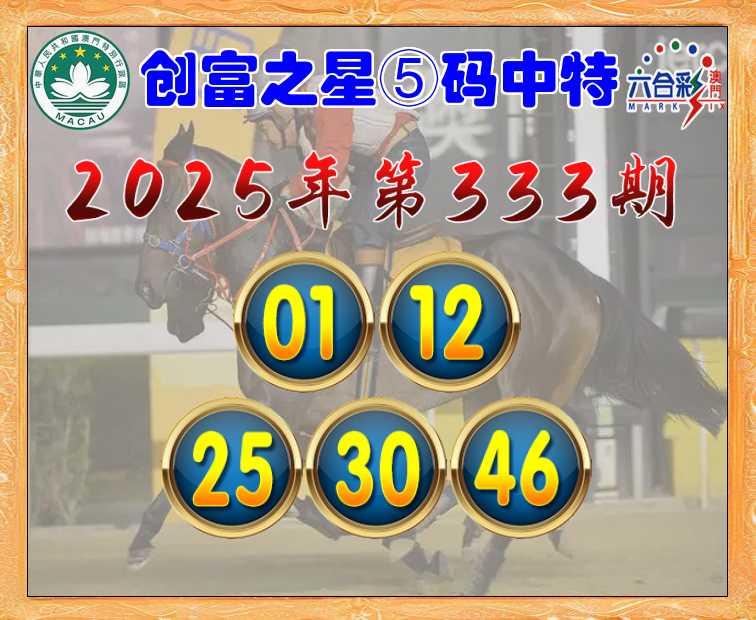 333期:『创富之星』 🍏⑤码中特🍏【01.12.25.30.46】开:06
