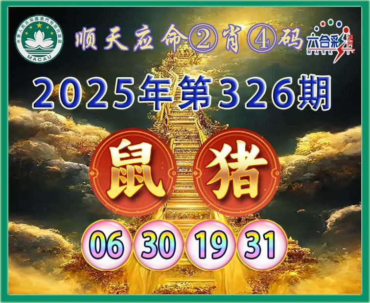 326期:【顺天应命】 🎖️②肖④码🎖️【鼠】【06.30.19.31】开:猪19