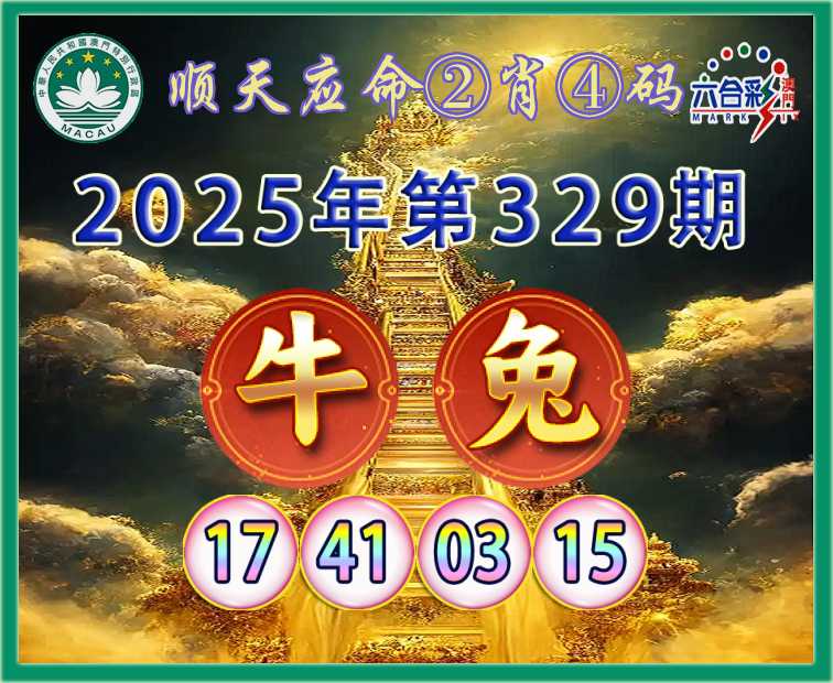 329期:【顺天应命】 🎖️②肖④码🎖️【兔】【17.41.03.15】开:牛17
