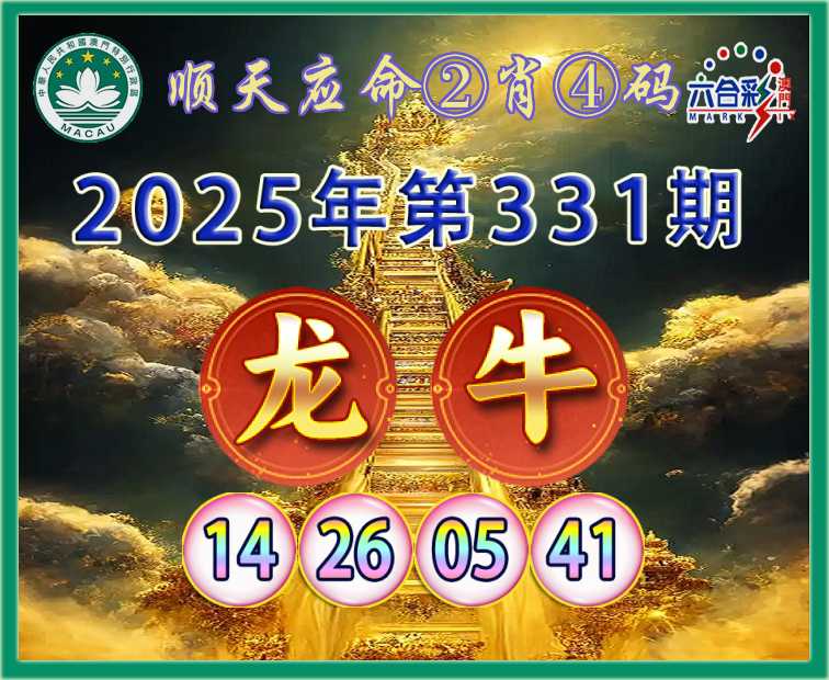 331期:【顺天应命】 🎖️②肖④码🎖️【牛】【14.26.05.41】开:龙26