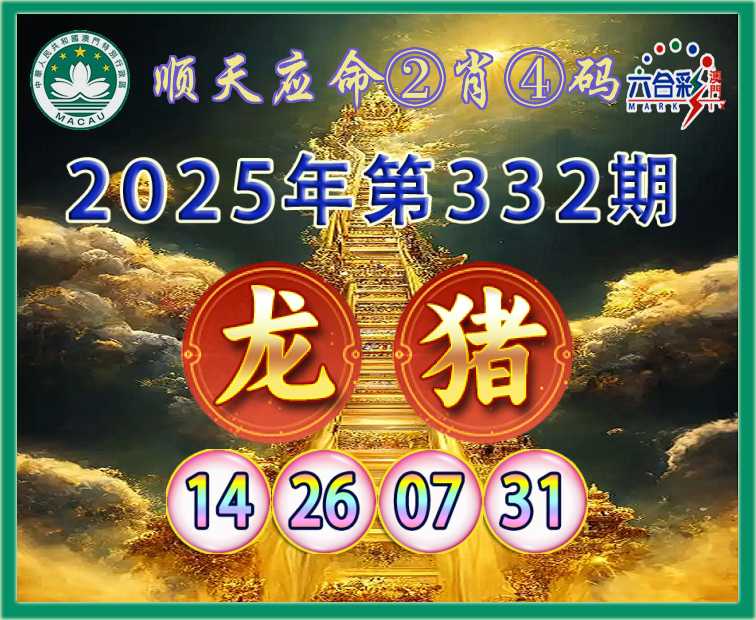 332期:【顺天应命】 🎖️②肖④码🎖️【猪】【14.26.07.31】开:龙26