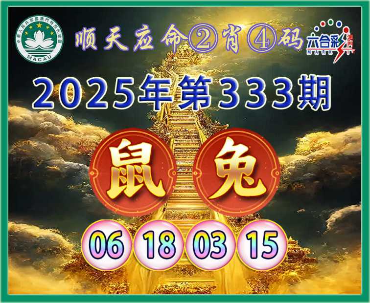 333期:【顺天应命】 🎖️②肖④码🎖️【兔】【06.18.03.15】开:鼠06