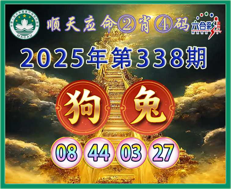 338期:【顺天应命】 🎖️②肖④码🎖️【兔】【08.44.03.27】开:狗08