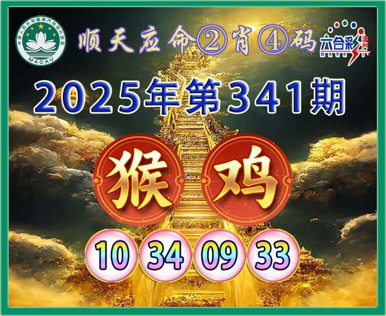 341期:【顺天应命】 🎖️②肖④码🎖️【猴鸡】【10.34.09.33】开:00准