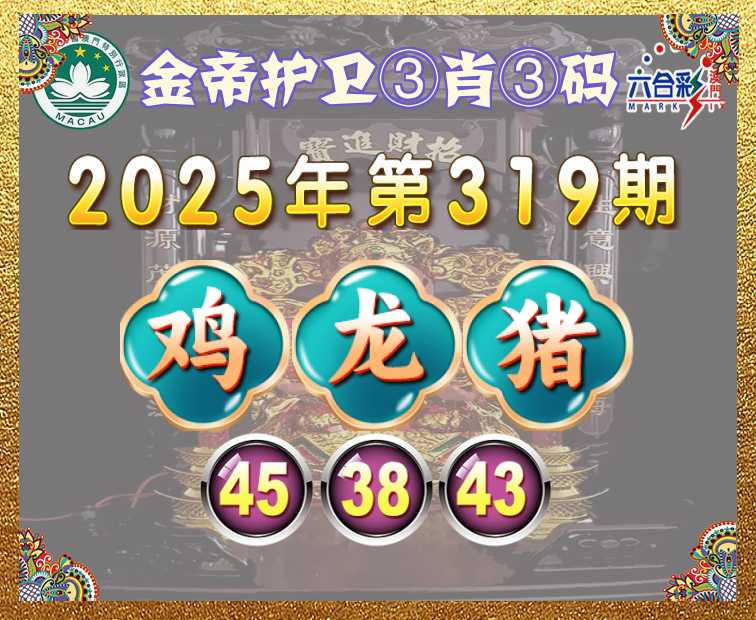 319期:『金帝护卫』 🐁③肖③码🐁【龙猪】【45.38.43】开:鸡45