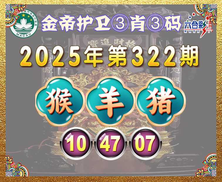 322期:『金帝护卫』 🐁③肖③码🐁【猴猪】【10.47.07】开:羊47