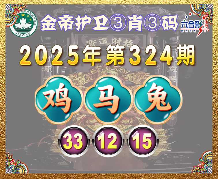 324期:『金帝护卫』 🐁③肖③码🐁【鸡马】【33.12.15】开:兔15