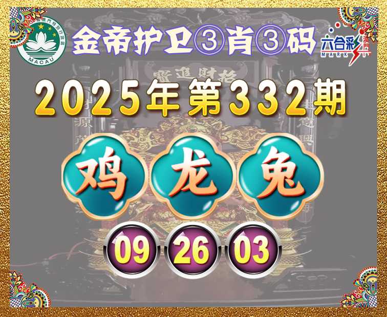 332期:『金帝护卫』 🐁③肖③码🐁【鸡兔】【09.26.03】开:龙26
