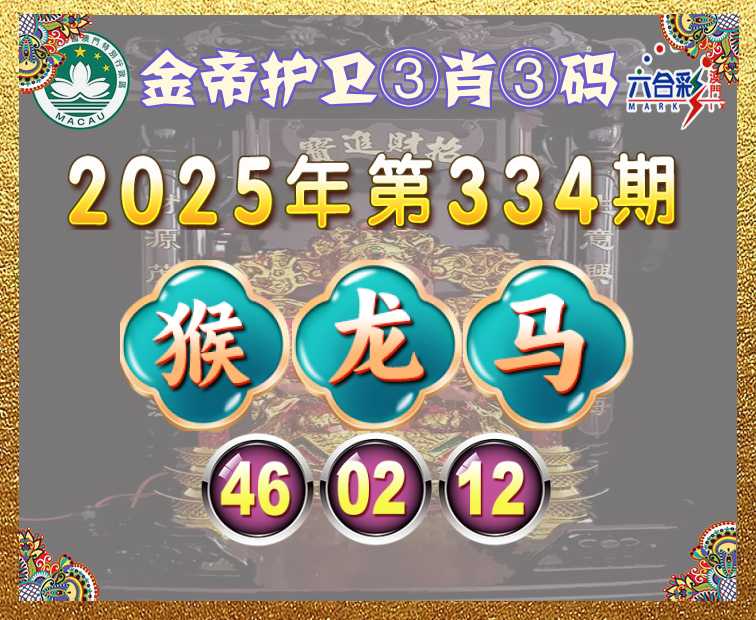 334期:『金帝护卫』 🐁③肖③码🐁【龙马】【46.02.12】开:猴46