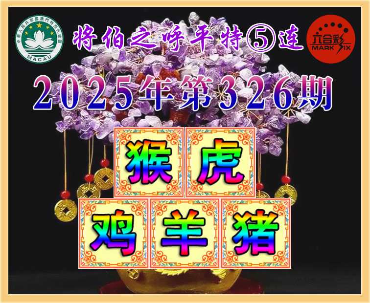 326期: 👑《将伯之呼》 👑平特⑤连👑【猴虎鸡羊猪】开:猴46,虎04,鸡33,羊23,猪19