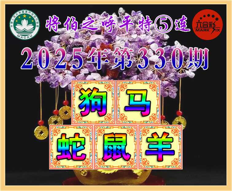 330期: 👑《将伯之呼》 👑平特⑤连👑【狗马蛇鼠羊】开:狗20,马36,蛇37,鼠06,羊11