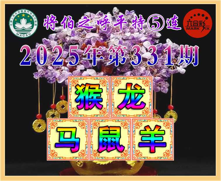 331期: 👑《将伯之呼》 👑平特⑤连👑【猴龙马鼠羊】开:猴22,龙26,马24,鼠42,羊47