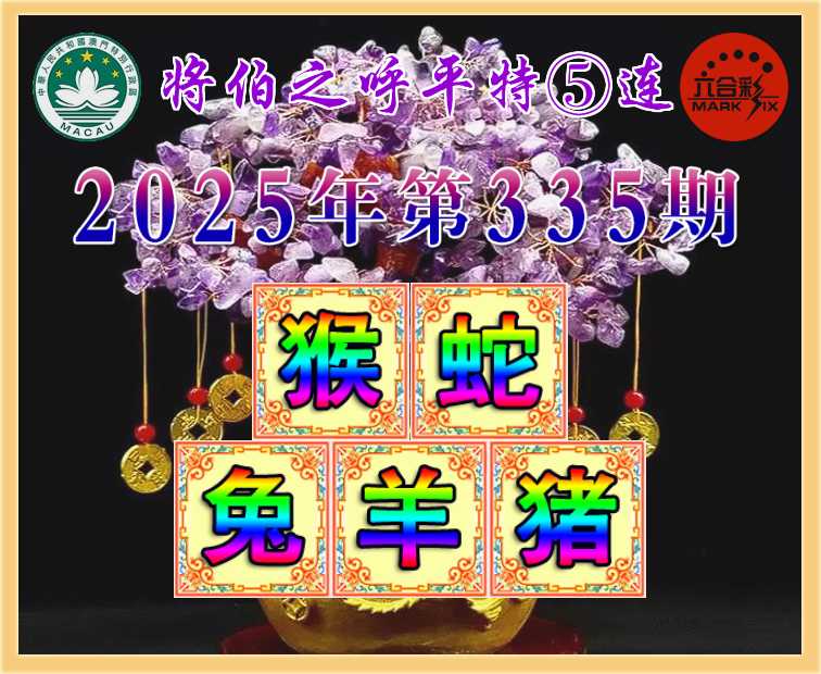 335期: 👑《将伯之呼》 👑平特⑤连👑【猴蛇兔羊猪】开:猴34,蛇13,兔03,羊35,猪31