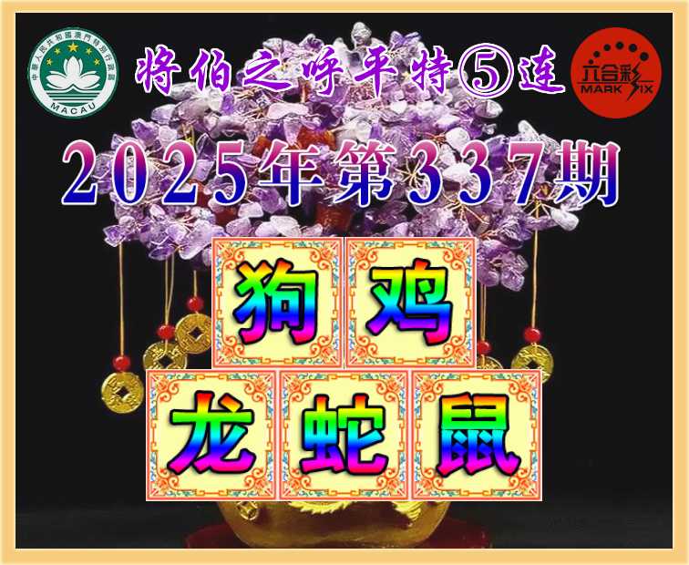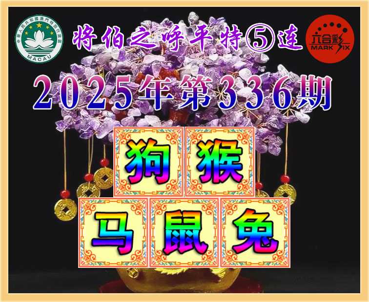 336期: 👑《将伯之呼》 👑平特⑤连👑【狗猴马鼠兔】开:00