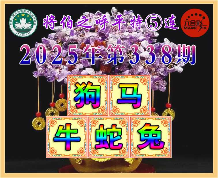 338期: 👑《将伯之呼》 👑平特⑤连👑【狗马牛蛇兔】开:狗08,马48,牛41,蛇25,兔15