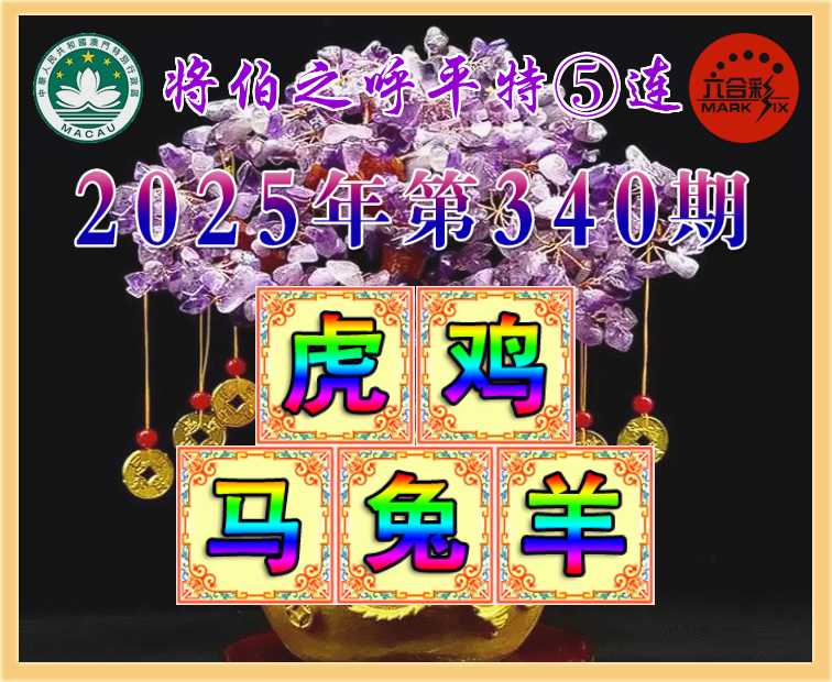 340期: 👑《将伯之呼》 👑平特⑤连👑【虎鸡马兔羊】开:00准