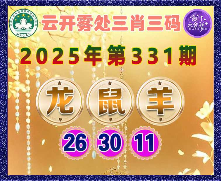 331期:〖云开雾处〗 🤘三肖三码🤘【鼠羊】【26.30.11】开:龙26